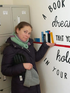 Emily posing in front of the sign just outside the Foreign Language Library.